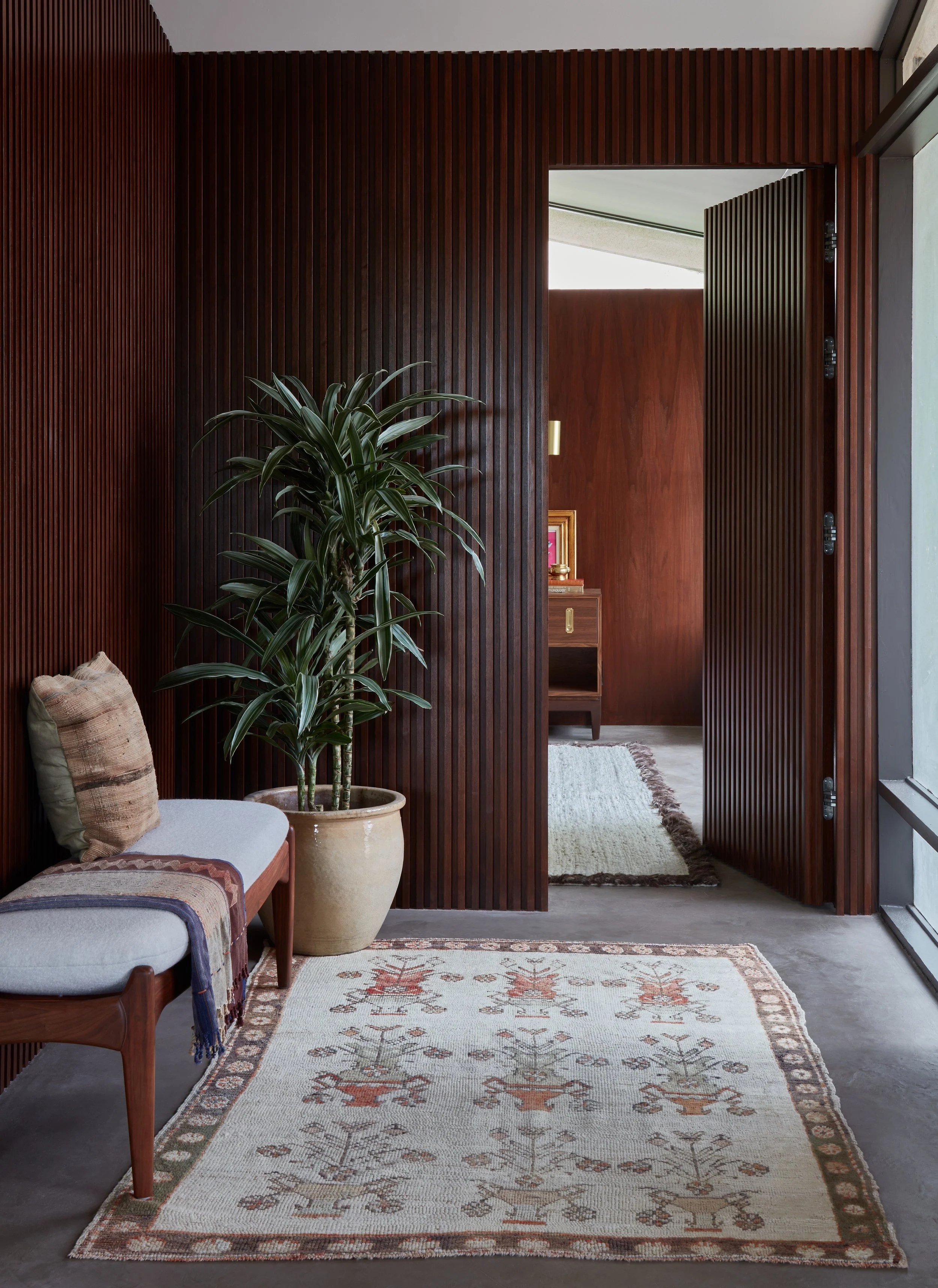 This full-home renovation in La Cañada unveils a stunning transformation—where every detail has been curated to honor the home's mid-century soul while embracing the rhythm of modern living. Step inside, and you're met with a palette of rich, warm tones that wrap the space in comfort and quiet sophistication. Contemporary comforts are seamlessly woven into the design, creating a home that feels both timeless and alive. It’s a haven crafted for a young, modern family—a place to grow, gather, and make lasting memories within walls that echo with history and heart.